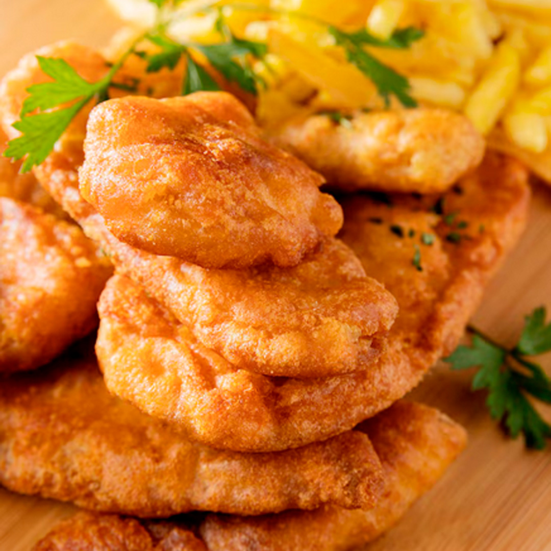 Combo Pops con trozos de pechuga apanada, acompañado de papa francesa, arepa y gaseosa de 250 ml. Una opción práctica y llena de sabor.